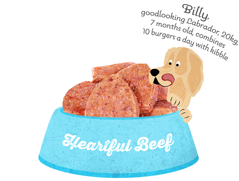 • 60% rundervlees, waarvan >90% hart (onze personal favourite onder de spieren) en spiervlees (verkregen bij het langzaam ontvliezen van runderbotten of het versnijden van biefstukken). Rund is één van de meest courante eiwitbronnen voor huisdieren, omwille van zijn hoogwaardige eiwitten.